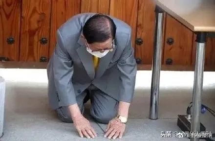 ▲韩国新天地教教主李万熙跪地向韩国人谢罪