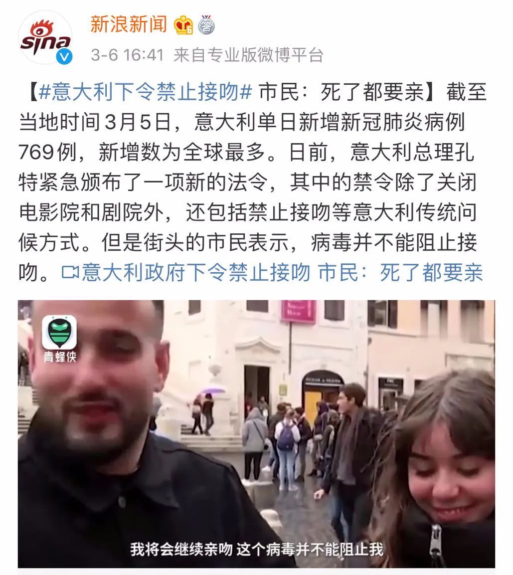 意大利人比韩国人还不服气,就算疫情爆发了,还认为是流感,继续活动无所谓。一些政客也迎合这种情绪,怕麻烦就当流感宣传了,还攻击戴口罩的。但是意大利毕竟是真出了非常多的病例,挤爆了医院,死了366人,终于知道厉害了。