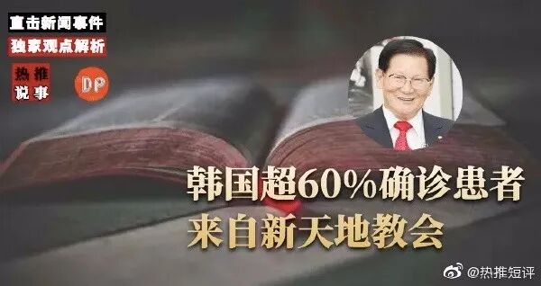 韩国官员3月1日表示,导致疫情扩散的关键团体新天地教,其部分信徒1月曾到访过武汉。从去年7月1日到今年2月27日期间,有3160名韩国新天地教会的信徒从中国入境韩国,其中有42人从武汉入境。这些人中应该有一些感染者,但是却被忽视了,在韩国进行了密集的宗教聚集活动。