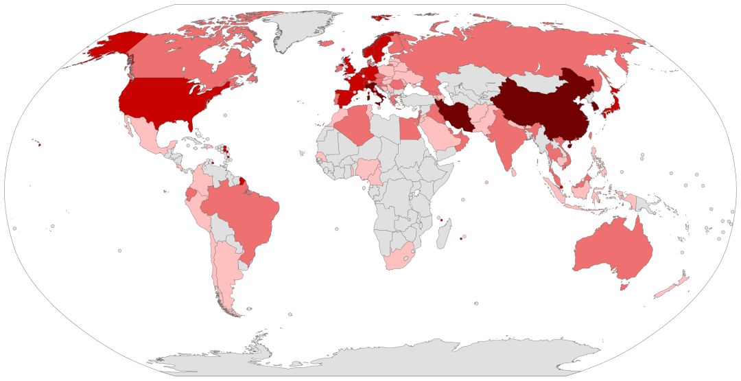 韩国、意大利、伊朗、日本,是病毒已经搞出很大麻烦的国家,各自有一些心理问题。欧洲其它国家没有意大利那么严重,和美国一样确诊数字在快速增加。全球发展中国家基本懒得检测,要么就顺着输入的病例检测几下。