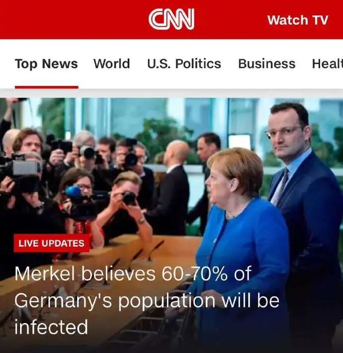 刚刚,据CNN报道,德国总理默克尔相信,德国未来60%到70%的人会感染新冠病毒。如果德国对形势都这么悲观,那么整个欧洲的情况呢?而在此前,英国曾表示可以接受死亡50万人的代价,最悲观将会有80%的人口会感染。死亡50万人,80%的人口感染,意味着0.94%的死亡率。
