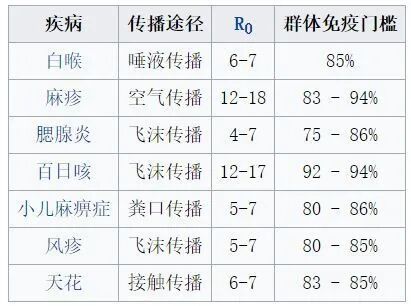 最后看一下过往传染病的“群体免疫门槛”