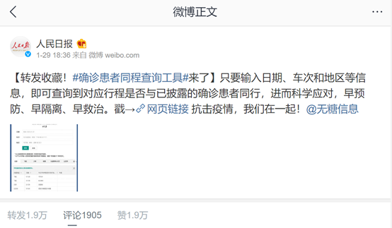 后来人民日报点赞并转发了这个工具,累计访问量突破了3500万次。幸好他们提前就把工具搭载在阿里云上,成功扛住了不断爆发的流量。毫无疑问,这为快速确认是否与新型肺炎确诊患者同行,迅速进行诊断和隔离作出了不小的贡献。