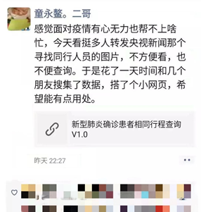 一条条跳动在新闻上的患者同行信息,就是一个个防控疫情的关键节点,童永鳌以一个技术人的角度思考,认为必须要在短时间内做一个搜索工具。