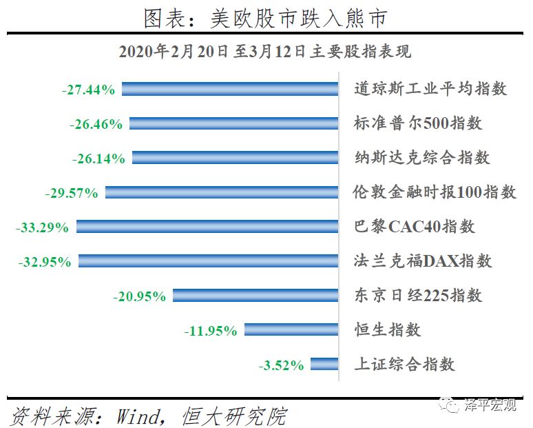 以中国为例,2020年1-2月,中国社会消费品零售总额和固定资产投资完成额累计同比分别从2019年12月的8.0%和5.4%下滑至-20.5%和-24.5%,工业增加值累计同比从5.7%下滑至-13.5%,2月制造业PMI从1月的50.0下滑至35.7,均创数据公布以来的最低值,远超2003年SARS和2008年国际金融危机。一季度GDP大概率负增长。
