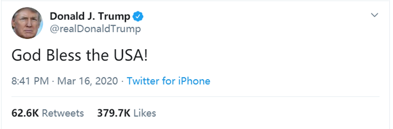 逼急了的特朗普,也开始病急乱投医,开始求上帝保佑了。