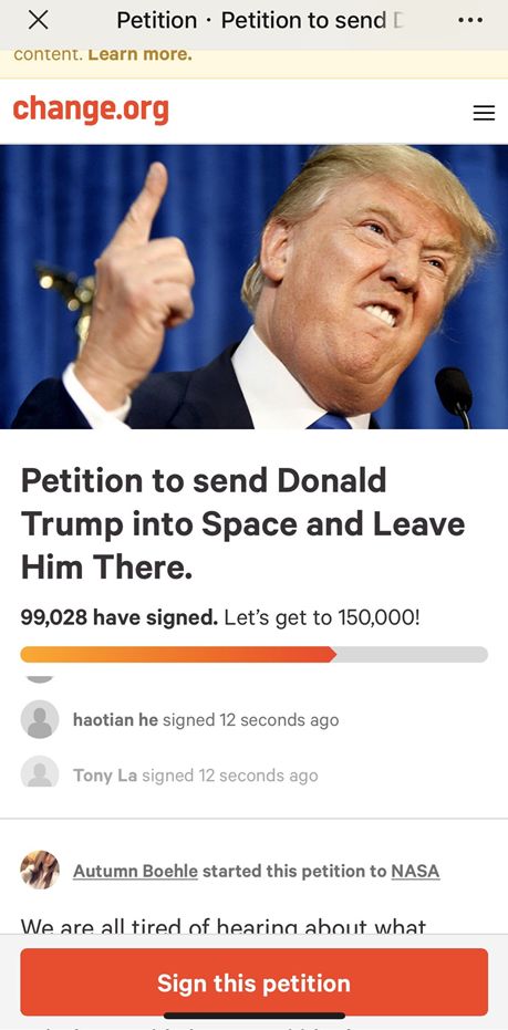 请愿把特朗普发射到太空的项目: