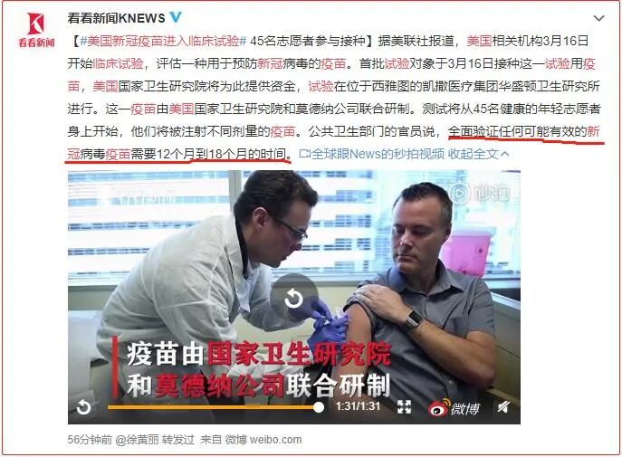 尤其美国,大概是因为有一个“没人比他更懂病毒”的总统,也开始了临床试验,已有45名健康的志愿者参与接种,全面验证是否有效则需1年到1年半。