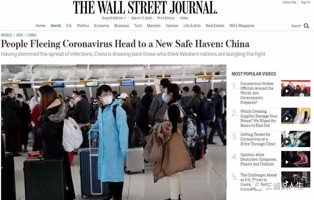而美国的谣媒被中国外交部暴锤以后,也变得老实了!《华尔街日报》3月16日的头版文章说,“数周前,人们逃离中国以躲避新冠病毒。现在情况却颠倒过来。人们开始前往中国,因为他们认为这里才是世界上最安全的地方”。中国不再是“亚洲病夫”,而是人们逃避新冠病毒最安全的首选地!看来,有些外媒真的是欠打,暴锤一下就变老实了!