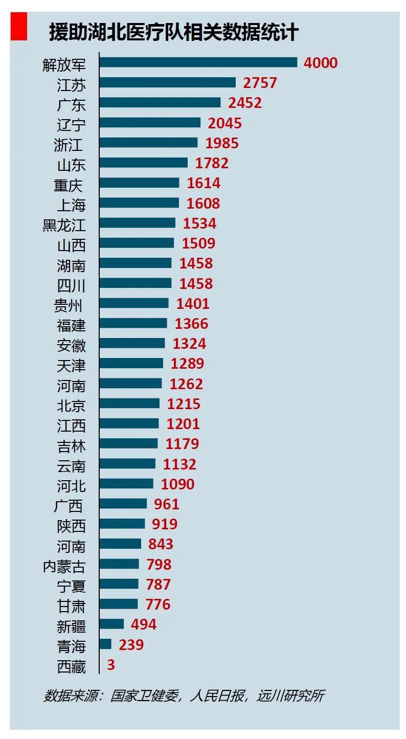 湖北几乎所有的公立医院的医生,都冲在了抗击疫情的最前线,其中金银潭、协和、同济、中心医院等医疗机构的情形更是牵动无数中国人的心。在压力最大的1月底2月初,大量医生坚守岗位,甚至在缺乏防护用品的情况下继续工作,涌现了无数可歌可泣的故事。而在各省支援湖北的大调兵中,全国各地的公立“超级医院”们更是“召之即来,来之能战”,甚至出现了“东齐鲁、西华西,北协和、南湘雅”四大公立医院会师的情景。在支援湖北的几百只医疗队和4万多名医护人员中,大部分都来自军方和公立医院。
