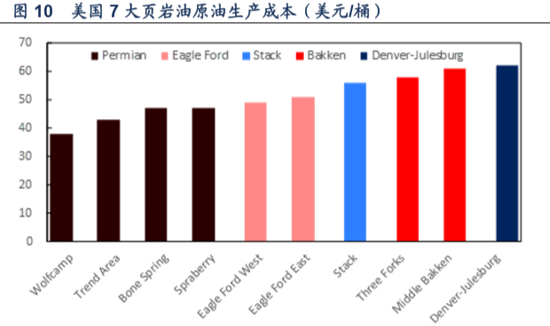 上图是美国7大页岩油商的每桶油成本,从40-60不等,当时是2016年