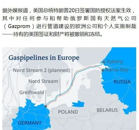 所有参与和帮助俄罗斯天然气公司进行管道建设的欧洲公司和个人,其美国签证和在美财产,都将被冻结