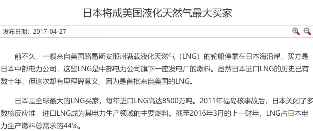 早在2017年特朗普刚上台几个月,日本就将成为美国天然气的最大买家了