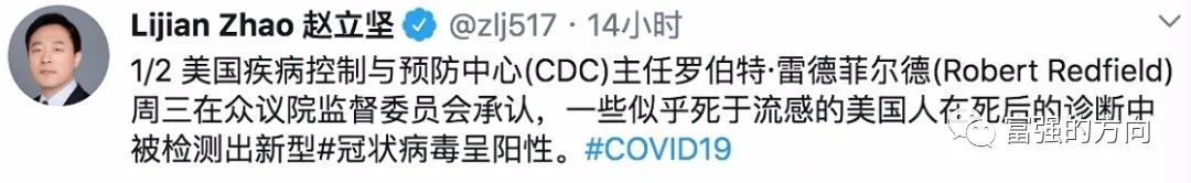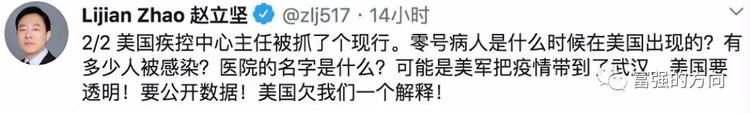 3月12日,我国外交部发言人、新闻司副司长赵立坚在推特上发文如下: