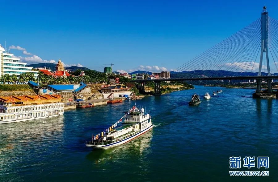 图为2016年12月15日,中老缅泰湄公河联合巡逻执法船艇编队驶过云南景洪港码头。图源:钱程|新华社