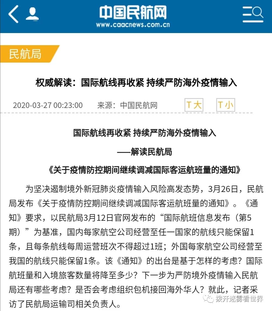 中国民航局把运送中国公民入境的航班砍掉80%以上,还振振有词的说: