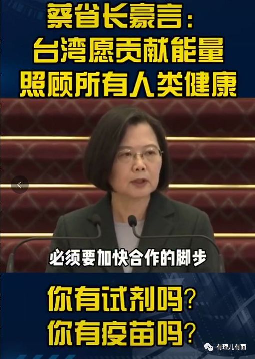 这事让蔡省长自我感觉比较好,以至于豪言:“台湾愿贡献能量,照顾所有人类健康”。