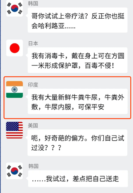 如果你们有关注疫情就会知道,最新情况是国外疫情越来越严重。面对疫情,政客们之间的互相指责其实与你我这些屁民没多大关系。前几天看到一篇标题是《对方邀请你加入群聊……》的公众号文章。在里面通过拟人化把各个国家最近的一些现状和表现说出来。如果你在互联网一搜,会出现无数篇对外国防疫的嘲讽的文章。如你所见,大家在戏虐地嘲讽外国的同时,带着一种旁观者的轻松。就拿大家都嘲讽的感染人数「世界第一」的美国来说,我看互联网都在嘲讽着他们就算感染到这样的了。西方人对戴口罩本身就具备有很强的抗拒性,他们的观念认为戴口罩就是有病的人。另外一点,他们认为全民戴口罩就意味着是世界末日一样,会造成恐慌。其实西方政府很多没有呼吁戴口罩,呼吁的是洗手、不握手等。当然原因有可能跟地理位置有关,但数据上看到的是,印度的情况,的确不算严重。放大他国与我们认知的差异去嘲讽他人以此达到自我高潮。如果你打开社交平台,你会看到那种外国疫情新闻下面都会有「抄作业」言论的出现。