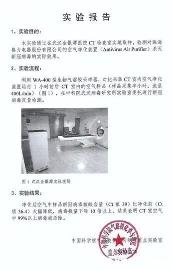 但是,格力宣传这款空气净化器的作用,并非完全杜撰。由中国科学院气溶胶化学与物理重点实验室出具的实验报告称: