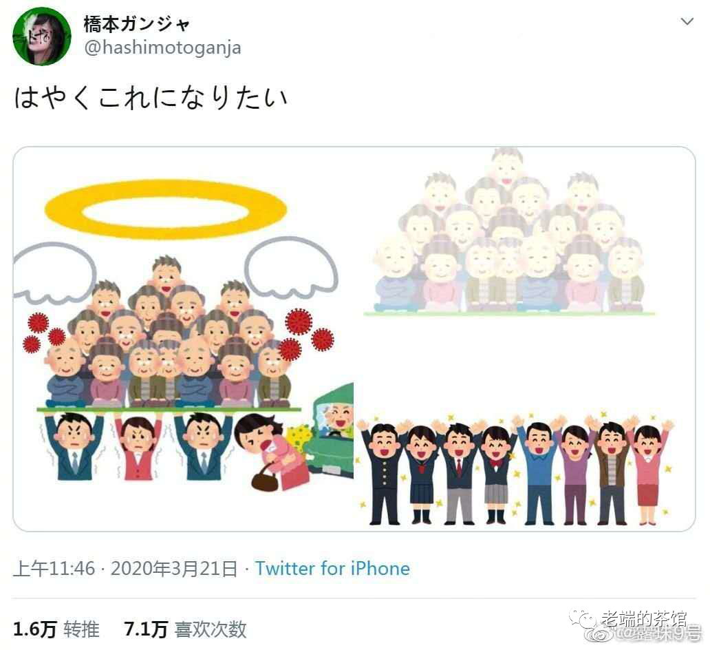 漫画的意思很明显了,年轻人托着好多老人,感觉身心疲惫,等到这些老人全都上了天堂,大家都高兴地笑了起来。我甚至开始怀疑,为什么国外对防疫那么漫不经心,他们的目的是不是故意让所有人都感染,然后死亡率最高的老人都去见上帝,这样老龄化问题就解决了,真是细思恐极啊。
