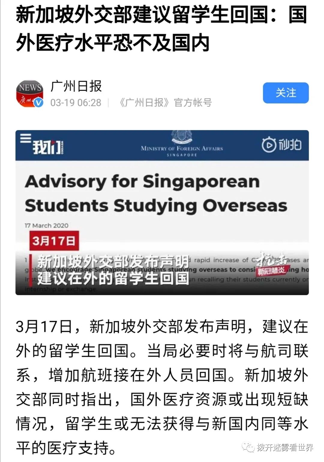 弹丸之地的新加坡,不仅没有要求留学生不回国,反而动员所有在海外的留学生回国。