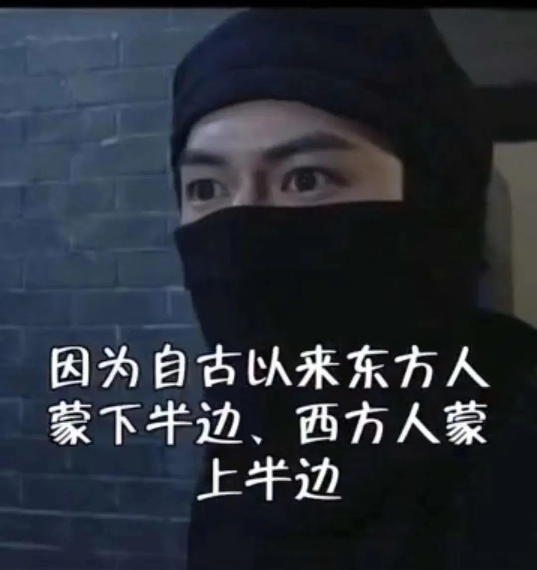 而东方人更含蓄,蒙下半边。