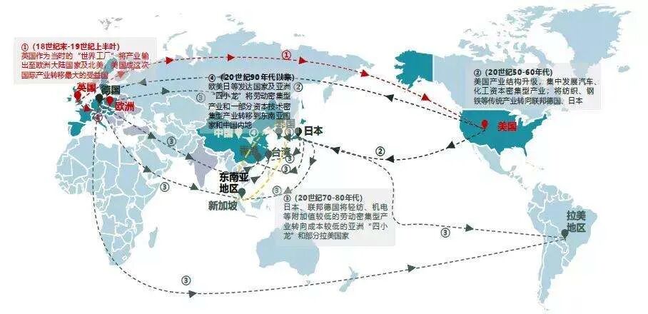 目前全球大部分中低端制造业还是在中国(当然高端制造业也有不少)。将来中国发达起来了,也或许有可能将国内一些中低端产业也可能转移到东南亚、南亚去,那也是可以想见的。