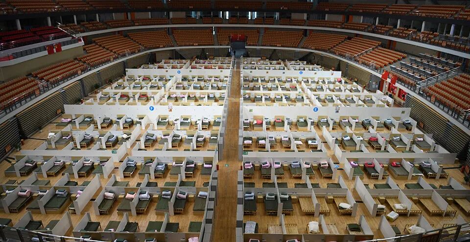 武汉体育中心方舱医院(新华社记者 程敏/图)