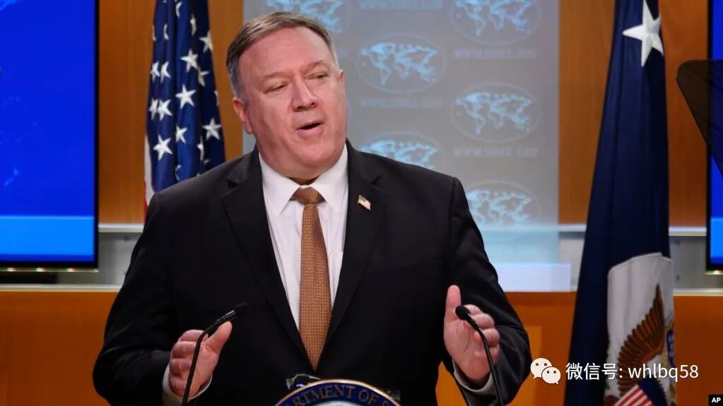 【彭佩奥在记者会上攻击中国讲话截图】