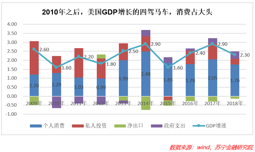 消费的火车头地位叠加高波动性特征,让家庭支出成为左右美国经济的关键力量,有些经济学家甚至把家庭支出萎缩看作2008年金融危机的导火索——家庭支出下降,企业暂缓投资,失业率上升,家庭支出继续下降,引爆各种潜在问题,危机就产生了。