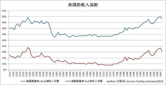 70年代后期起美国收入差距开始增大