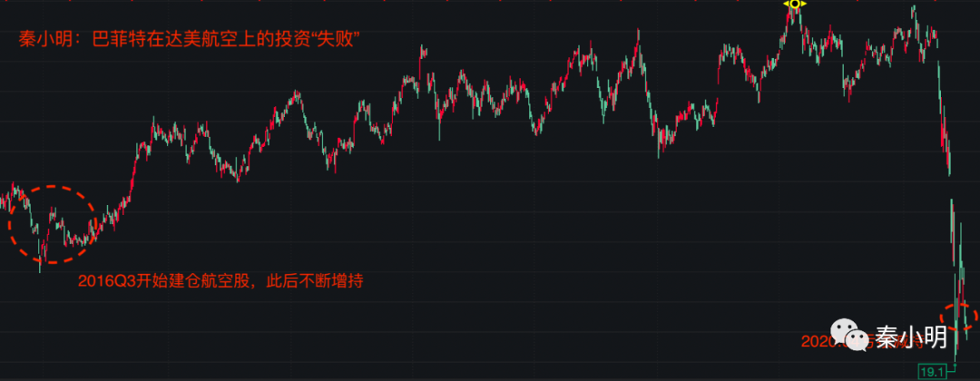 上周五,股神巴菲特旗下伯克希尔公司递交给美国证监会(SEC)的文件显示,伯克希尔在当周减持了为数不少的航空股股份。伯克希尔以均价大约24美元出售了1300万股达美航空的股票,价值约3.14亿美元。并以均价约32美元出售了约230万股西南航空的股票,价值7400万美元。而令人唏嘘的是,股神巴菲特在三月接受采访时才公开说过:此前,在市场刚刚开始下跌的2月底,巴菲特曾以均价约46美元的价格购买了97.6万股达美航空的股票,如果按照24美元左右的出售价,这笔抄底亏损近50%。(见题图)考虑到巴菲特自2016年三季度开始建仓航空股,随后随着股价上涨不断增持,彼时达美航空的最低价格为29.82美元,也远远高于本次减持均价24美元。这样计算,股神至少本轮减持的股票,是确定亏损,且比例不小。巴菲特本轮减持航空股占其全部持有的航空股股份并不算高,达美和西南两家公司减持的比例分别为18%和4%。换句话说,伯克希尔目前手上依然持有大量航空公司股票。从股神麾下伯克希尔持有的超过2000亿美金的总股票市值来看,航空股占有的份额并不算多。因此,航空股的抄底失败,对巴菲特的整体持仓市值,影响不大。股神还是那个股神,巴菲特依然是全球最伟大的投资人之一。然而,从投资交易的角度,股神的这次失败,依然值得大家借鉴反思。巴菲特背后的男人,伯克希尔副董事长查理芒格曾经就“如何过上痛苦的一生”开过一个方子,其中提到的一味药就是:尽可能从你们自身的经验获得知识,尽量别从其他人成功或失败的经验中广泛地吸取教训,不管他们是古人还是今人。这味药肯定能保证你们过上痛苦的生活。