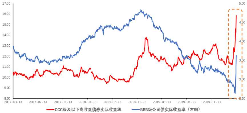 三是债券市场风险长期累积。美国非金融企业债券余额2008年至今上升超2.5倍,其中风险较高的BBB及以下等级企业债券占比不断提升至“半边天”。