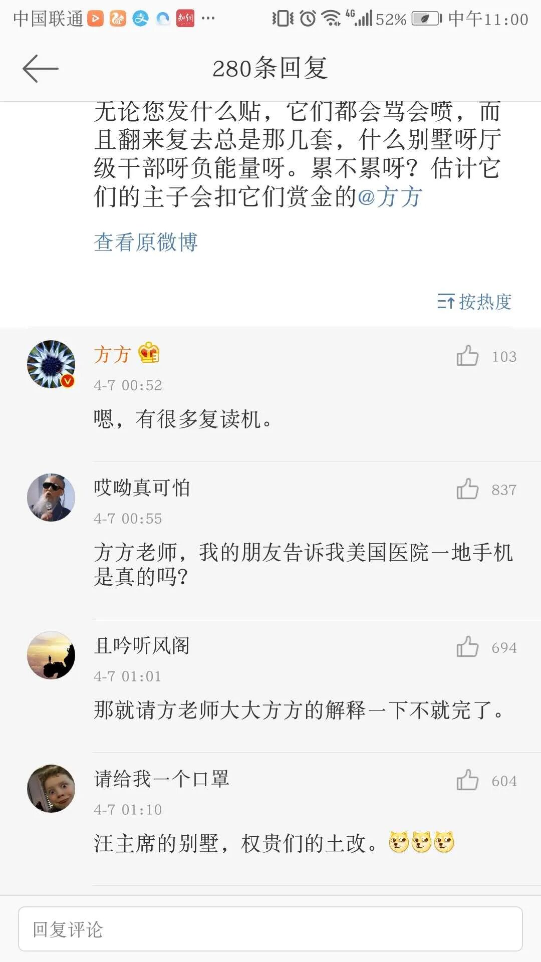 方方喜欢说一个健康的社会不能只有一种声音,但她却不能容忍质疑和批评自己的声音。