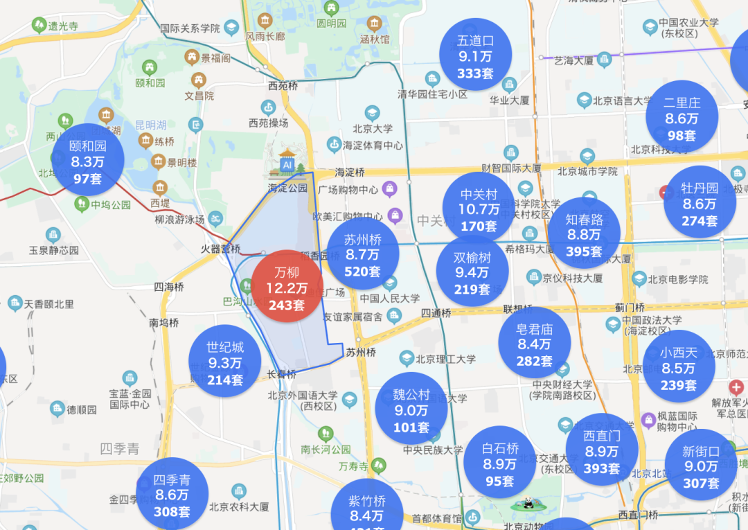 拿北京海淀举例。海淀区因为有清北八大高校加持,这里的房子天生便成为全国家长的梦想,10万/平米房价的老破小比比皆是。