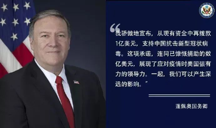 美国国务卿蓬佩奥向世界骄傲地宣布,向中国捐助了数亿美元