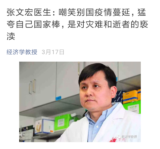 张文宏医生:嘲笑别国疫情蔓延,猛夸自己国家棒,是对灾难和逝者的亵渎