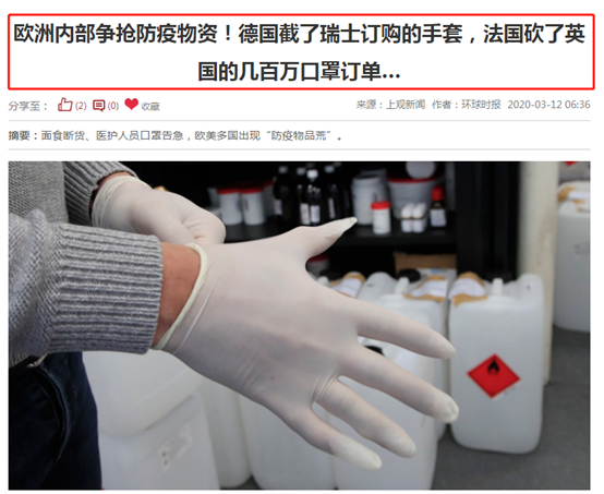 在中国克服内部疫情,对外捐助、出口医疗物资、支援医疗人员的当下。