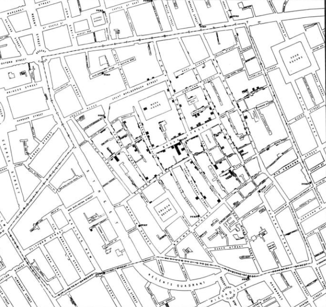于是斯诺把这份病例分布的“死亡地图”,连同其他的详细调查报告提交给政府,建议拆除这个水泵,但当时的主流社会依然对他的“水源说”嗤之以鼻。