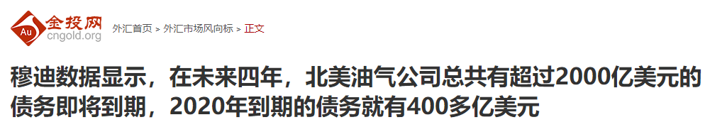 事实上,页岩油企业在标普500指数的占比很低。据穆迪数据显示,未来4年,北美油气公司共有2000亿美元的债务到期,2020年的页岩油到期债务仅仅400多亿美元,根本无法危及美国精英的统治。