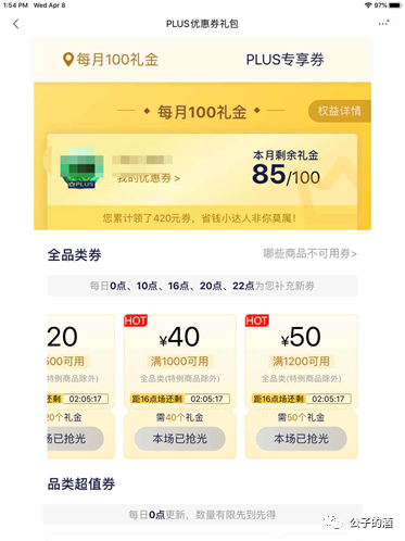 不过,已经买下去了,况且2000多元的冰箱能便宜50,于是我继续操作。但是,点击“去领取”,发现全品类券不是发的,是要抢的。50元的券,我也没领到。