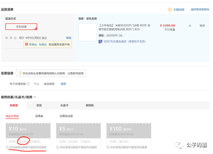 晕,券的名称,不是“ 全品类 ”吗?听上去就是全部商品都能用的感觉啊。 再回到界面,发现一行小字。“此商品不可使用京券东券”。