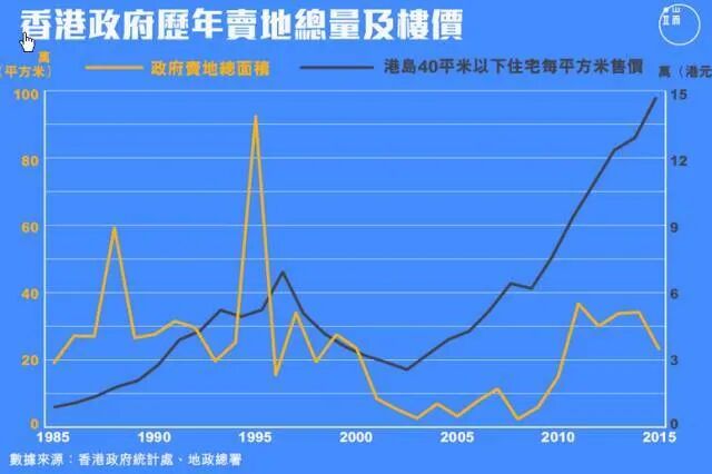 但从图中我们可以看到,1998~2003香港政府的卖地数量并没有显著的增长,甚至还不如港英政府卖的多。
