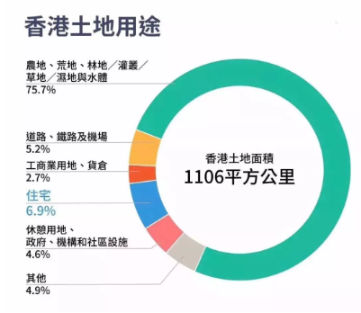 房产建筑作为一种消耗品,并不是永恒不变的,设计院只定下了70年寿命。这相当于房屋每年会自然折损1.5%,如果时间拉的足够长,那效果就会很显著。我们从卫星地图上可以明显看到,香港地区简直就是一片绿,大片的土地闲置。从深圳关口去香港,需要乘坐三四十分钟的港铁才能抵达市中心香港九龙。这三四十分钟的旅途中,经过的大多数都是山林野地,完全没有任何开发。香港只有6.9%的土地,是拿来做住宅的,农地、荒地、林地、草地、湿地高达75.7%。