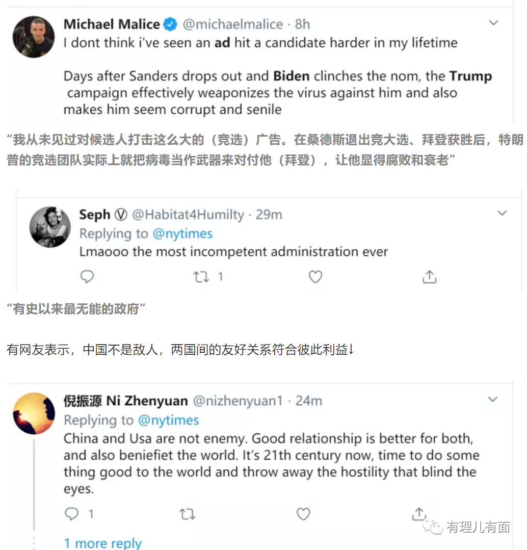 美国拉开帷幕的“驴象之争”,打出的第一枪,不是如何挽救面对疫情侵袭下的民众生命问题,亦不是在美一直饱受争议的医改问题,竟然是让抗疫有显著成效的中国无辜“躺枪”!这让睿智的网民都看不下去了。批评如潮水般袭来,有网友表示,特朗普借此转移人们对自己在疫情应对不力的注意力,还有网友批评特朗普把疫情作为武器攻击拜登。有网友指出“中国和美国不是敌人,友好关系对双方和世界都有好处。现在是21世纪,是时候做些对世界有益的事情,抛弃蒙蔽双眼的敌意”。