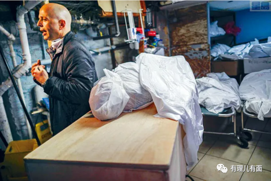 现在,对于美国民众来说,新冠病毒已经不是看不见的威胁,纽约时报称“在纽约,几乎每个人身边都有人感染病毒”。无助的恐惧中,纽约市民看到疫情正以令人眩晕的速度和烈度攻克这座城市,许多人失去了——可能是同事、高中时的老朋友、孩子同学的家长,也可能是教区牧师、楼上年长的邻居,或者一位父亲或母亲。最现实和残酷的是,纽约市内各家殡仪馆的老板纷纷叫苦连天。布碌仑日落公园墓地(Sunset Park)的老板马尔默(Pat Marmo)表示,自己的殡仪馆由于死亡人数远超现有设施的负荷上限,有一些尸体放在担架车上。马尔默表示,一时间无法处理大量遗体。