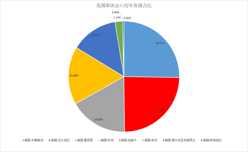 下图反映了美国原油2018年出口目的地结构,亚太地区已四分天下有其一。