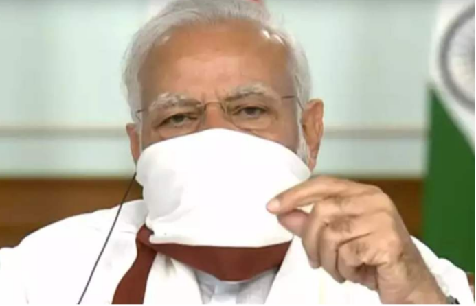 再早一些,莫迪还佩戴过“自制口罩”——由一条长带制作而成的口罩。并且,在莫迪与印度各部长举行会议时,就他一个人戴着自己做的口罩,其他参会人员都戴着医用外科口罩。