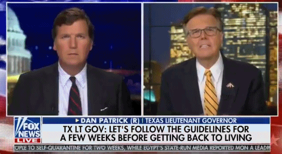 美国69岁的德州副州长在接受采访时说过:“再这么全面封锁下去,因为经济衰退而死的人会比疫情死的人还要多。”
