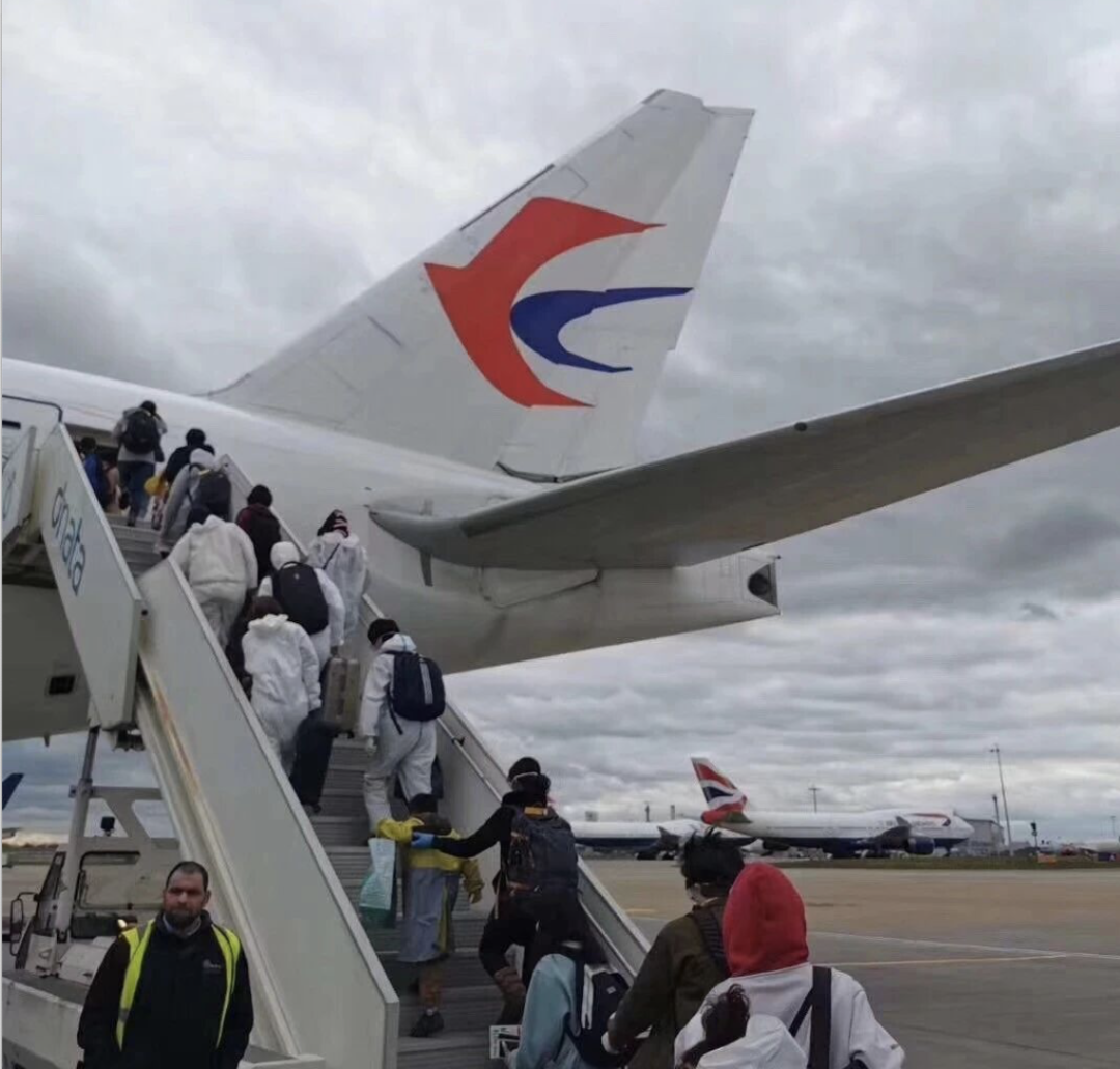 ▲搭乘中国政府包机紧急撤离的中国留学生。